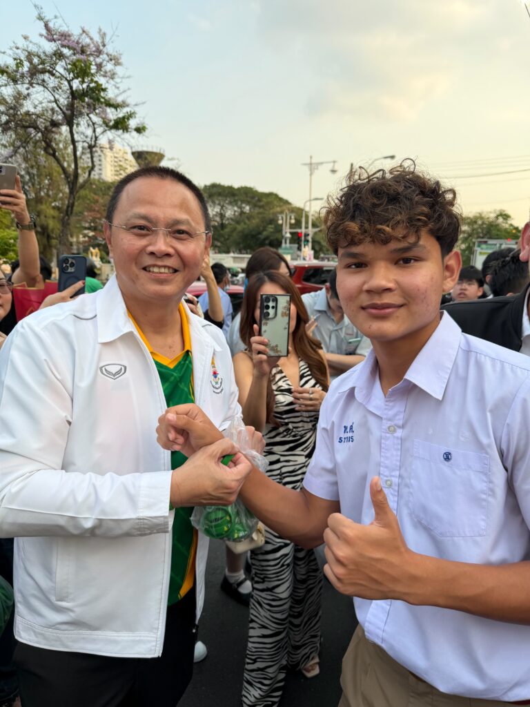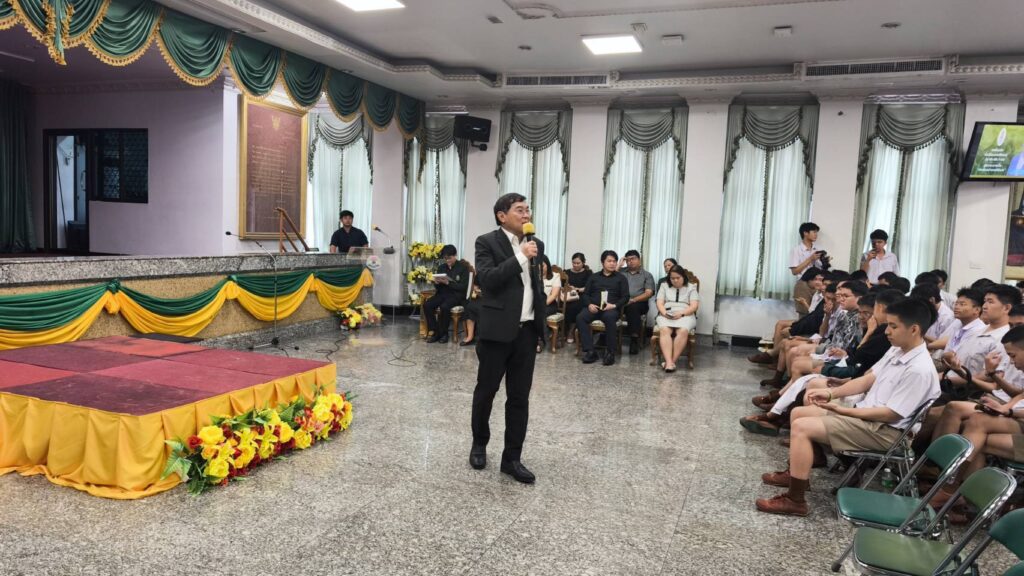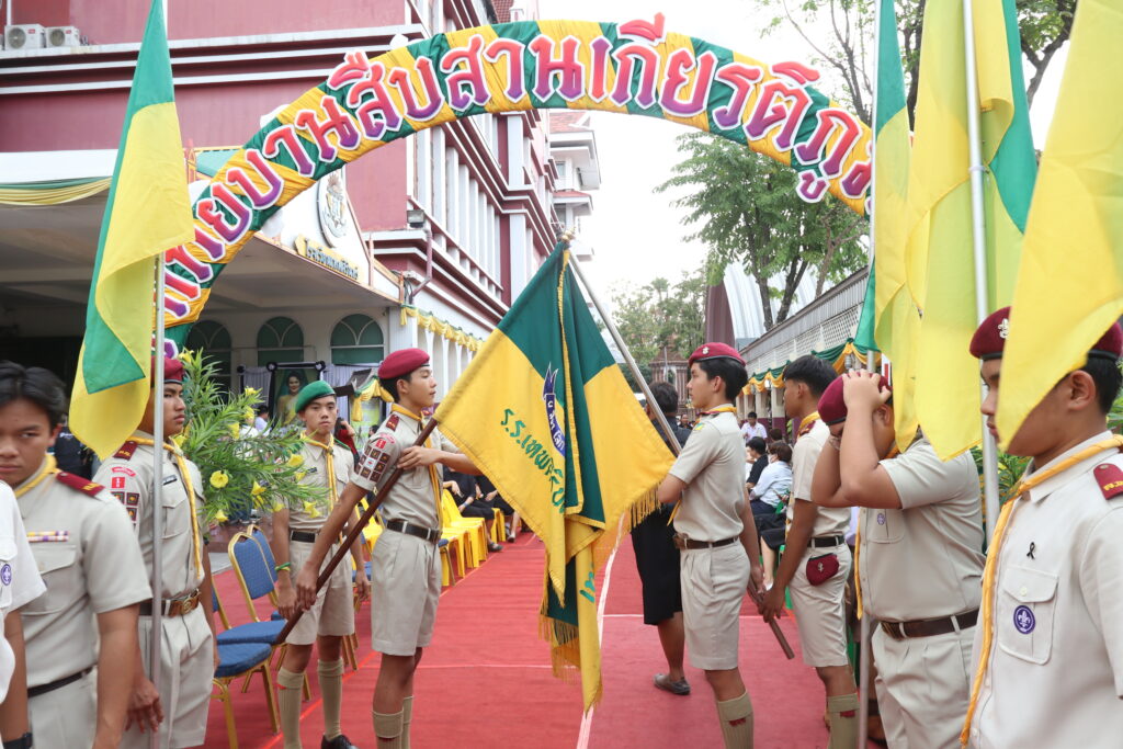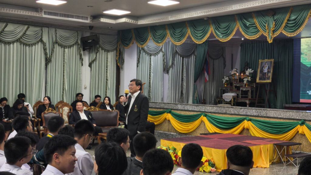 เมื่อวันพุธที่ 4 กุมภาพันธ์ 2569 ณ บริเวณลานด้านหน้าพระบรมราชานุสาวรีย์ ร.8 โรงเรียนเทพศิรินทร์ นายสิทธิ ภาณุพัฒนพงศ์ นายกสมาคมนักเรียนเก่าเทพศิรินทร์ ในพระบรมราชูปถัมภ์ พร้อมด้วยคณะกรรมการสมาคมฯ ร่วมกล่าวแสดงความยินดี และต้อนรับเข้าสู่การเป็นนักเรียนเก่าเทพศิรินทร์ ในกิจกรรม “รำเพยบาน สืบสานเกียรติภูมิ” ประจำปีการศึกษา 2568 จากนั้น กรรมการสมาคมฯ และพี่ ๆ นักเรียนเก่าเทพศิรินทร์ร่วมมอบริสแบนด์ต้อนรับสู่สถานะเป็นนักเรียนเก่าเทพศิรินทร์ รุ่น 2565-68 (140)